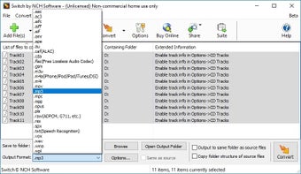 Switch MP3 Converter, NCH Software tarafından üretilen bir ses dönüştürücüdür. ses yazılımı, ses dosyaları için iki yönlü dönüştürme sağlar. İşlediği ana ses dosyası formatı MP3'tür. Bu yazılım, çoğu standart ses dosyası biçimini MP3'e dönüştürebilir. AIFF, AVI, CDS, M4A, MPEG, WAV ve WMA gibi formatları destekler. Kullanıcılar ayrıca DVD gibi videolardan MP3 dosyalarını çıkarabilir. Yazılım sistem kullanımını optimize ettiğinden dönüştürme işlemihızlı ve kolaydır. Kullanıcılar MP3 dosyasının bit hızı, format veya boyut gibi özelliklerini değiştirebilir. Her türlü bit hızını desteklerken ses seviyelerinin otomatik olarak normalleştirilmesi sağlanır. ID3 etiketleri kolaylık sağlamak için korunur. Kullanıcılar çevrimiçi kaynaklardan şarkı bilgilerini içe aktarabilir. Oynatma listelerini dönüştürmenin yanı sıra içe aktarabilirler. Kullanıcılar, dönüştürmeden önce ses dosyasını önizleyebilir. Yazılım, birçok ses dosyasını anında yönetmek için toplu dönüştürme içerir. Ayrıca, "Hızlı Dönüştürme" seçenekleri ve Windows Gezgini'ni açma/kapatma gibi özelleştirme seçenekleri de vardır.